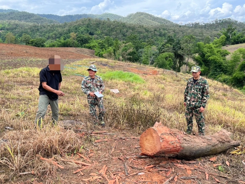วันที่ 22 มิ.ย. 2568 -เจ้าหน้าที่อุทยานแห่งชาติผาแดง ออกลาดตระเวนปราบปรามการกระทำผิดกฎหมายว่าด้วยการป่าไม้ บ้านนาศิริ หมู่ที่ 2 ตำบลเมืองนะ อำเภอเชียงดาว จังหวัดเชียงใหม่ ในเขตป่าสงวนแห่งชาติป่าเชียงดาว และในเขต อช.ผาแดง พบไม้ประดู่ท่อน ยังไม่ได้แปรรูป 1 ท่อน ถูกตัดทิ้งไว้ ห่างออกไปประมาณ 10 เมตร พบตอไม้ประดู่ยืนต้นตายอยู่ ลักษณะโคนต้นมีร่องรอยการถูกสุมเผา อีกทั้งยังพบขี้เลื่อยลักษณะสดใหม่ จึงกระจายกำลังตรวจสอบพื้นที่อย่างละเอียด พบเพิงพักชั่วคราว ผลปรากฎว่าพบไม้ประดู่แผ่นแปรรูปจำนวนมาก นำมาตีแปะติดอยู่กับเพิงพักบริเวณภายนอกจำนวน 4 แผ่น และตีแปะติดซ่อนอำพรางไว้บริเวณภายในเพิงพัก รวมทั้งสิ้น 17 แผ่น พร้อมผู้ต้องสงสัย 1 รายจึงได้แสดงตัวเข้าจับกุม เบื้องต้นได้สอบสวน จึงพบว่า ผู้ต้องหาและพรรคพวกรวม 3 คนจะทำการปลูกข้าวโพดในช่วงเช้า และช่วงเย็นถึงช่วงกลางคืน จะร่วมกันทำการแปรรูปไม้ โดยค่อย ๆ ทำไปวันละนิด โดยใช้เลื่อยโซ่ยนต์ของนายจ้าง ซึ่งบุตรชายของนายจ้างได้ ซื้อที่ดินต่อมาจากเจ้าของเดิม เพื่อมาทำกินต่อ