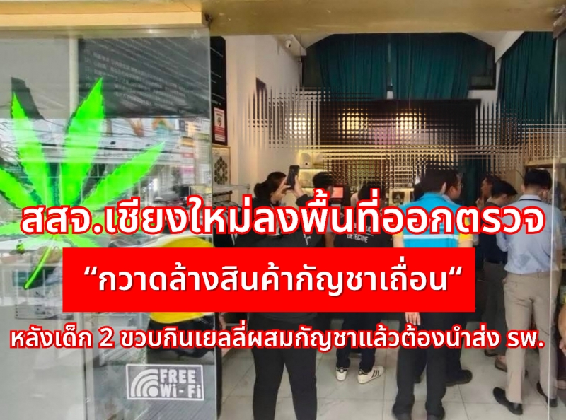ตามที่ นายสมศักดิ์ เทพสุทิน รัฐมนตรีว่าการกระทรวงสาธารณสุข ได้สั่งการ สำนักงานสาธารณสุขจังหวัด(สสจ.) ทั่วประเทศ ให้ดำเนินการกวาดล้างอย่างต่อเนื่องจนกว่าจะหมดไป จากกรณีเด็กหญิง 2 ขวบ 6เดือน กินเยลลี่หมี ผสมกัญชาจนต้องนำส่งโรงพยาบาล ในพื้นที่จังหวัดเชียงใหม่ นายแพทย์วรัญญู จำนงประสาทพร นายแพทย์สาธารณสุขจังหวัดเชียงใหม่ มอบหมายให้เจ้าหน้าที่กลุ่มงานคุ้มครองผู้บริโภคและเภสัชสาธารณสุข และเจ้าหน้าที่กลุ่มงานการแพทย์แผนไทยและการแพทย์ทางเลือก สำนักงานสาธารณสุขจังหวัดเชียงใหม่ ลงพื้นที่ตรวจสอบร้านและสถานประกอบการจำหน่ายกัญชาในเขตพื้นที่จังหวัดเชียงใหม่ ร่วมกับสำนักงานเขตสุขภาพที่ 1 ศูนย์อนามัยที่ 1 เชียงใหม่ ศูนย์วิทยาศาสตร์การแพทย์เชียงใหม่ และตำรวจท่องเที่ยว เพื่อเฝ้าระวังและประเมินการปฏิบัติตามกฎหมายและแนวทางที่กระทรวงสาธารณสุขกำหนด รวมถึงเน้นย้ำการจัดระเบียบการจำหน่ายกัญชาให้เป็นไปตามมาตรฐานด้านสุขภาพ ความปลอดภัย และการคุ้มครองผู้บริโภค โดยเฉพาะกลุ่มเด็กและเยาวชน