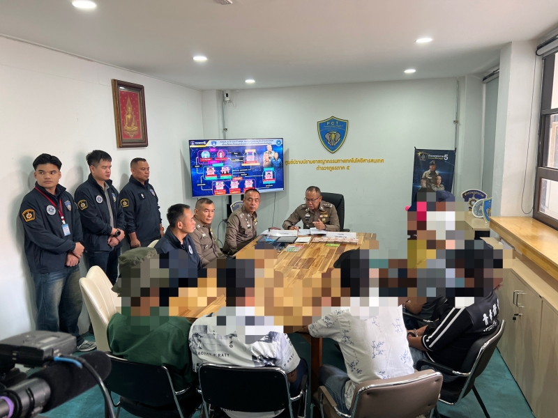 วันที่ 16 กันยายน 2568 พล.ต.ท.กฤตธาพล ยี่สาคร ผู้บัญชาการตำรวจภูธรภาค 5 พร้อมด้วย พล.ต.ต.ธวัชชัย พงษ์วิวัฒนชัย รอง ผบช.ภ.5 แถลงผลการจับกุมเครือข่ายขบวนการถอนเงินข้ามประเทศเชื่อมโยงแก๊งคอลเซ็นเตอร์เครือข่ายจีนเทาคิงโรมัน โดยได้รับการประสานงานจากศูนย์เทคโนโลยีสารสนเทศกลาง สำนักงานตำรวจแห่งชาติ