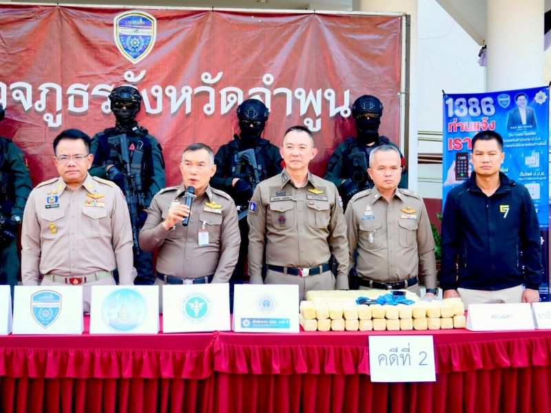 วันพฤหัสบดีที่ 29 มกราคม 2569 เวลา 15.00 น. ที่ตำรวจภูธรจังหวัดลำพูน นายปิยพงศ์ ชูวงศ์ ผู้ว่าราชการจังหวัดลำพูน มอบหมายให้นายโยธิน ประสงค์ความดี รองผู้ว่าราชการจังหวัดลำพูน พร้อมด้วยพล.ต.ต.บุณยวัต เกิดกล้ำ ผู้บังคับการตำรวจภูธรจังหวัดลำพูน พ.ต.อ.พชรพล วงศ์รจิต รอง ผบก.ภ.จว.ลำพูน (รับผิดชอบงานยาเสพติด) พ.ต.อ.ณัฐพล จันมะโน ผกก.สืบสวน ภ.จว.ลำพูน พ.ต.อ.นิรันดร อินผูก และพ.ต.ท.นริช สอนดิษฐ ผอ.สำนักงาน ปปส.ภาค 5 กอ.รมน.ลำพูน เจ้าหน้าที่พิสูจน์หลักฐาน ร่วมกันแถลงข่าวการจับกุมยาเสพติดรายสำคัญ ตามนโยบายรัฐบาล นายอนุทิน ชาญวีระกุล นายกรัฐมนตรีและรัฐมนตรีว่าการกระทรวงมหาดไทย สั่งการให้หน่วยงานของรัฐขับเคลื่อนนโยบายการป้องกันปราบปราม และแก้ไขปัญหายาเสพติดภายใต้นโยบาย “รวมพลังรักศรัทธาแก้ปัญหายาเสพติดแบบบูรณาการ Quick Big Win ในทุกพื้นที่