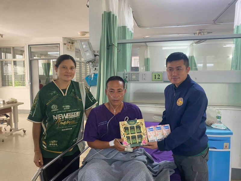 นายเกรียงศักดิ์ บุญตาปวน นายอำเภอแม่แจ่ม มอบหมายให้ นายกิตติพงษ์ ธิวงศ์ และนางสาวธัญพร แสนคำวัง ปลัดอำเภอแม่แจ่ม เข้าเยี่ยมและสอบถามอาการเบื้องต้น