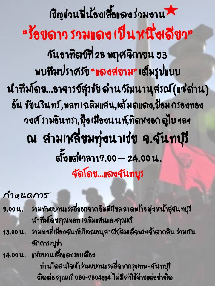 ทั้งนี้มีการแจ้งข่าวทางเวบไซต์คนเสื้อแดง เช่น เวบไซต์อินเตอร์เน็ตฟรีด้อมว่า