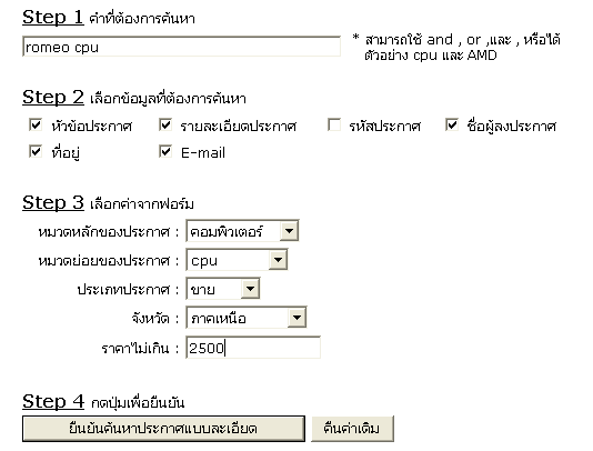 - step 3 ให้เลือกค่าจากฟอร์ม ทำงานเหมือนกับ search engine แบบเลือกจากฟอร์มโดยสามารถเลือกค่าใดค่าหนึ่งก็ได้