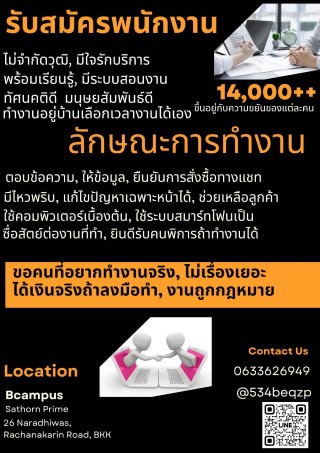 ตำแหน่ง: ติดต่อลูกค้าผ่านแชท