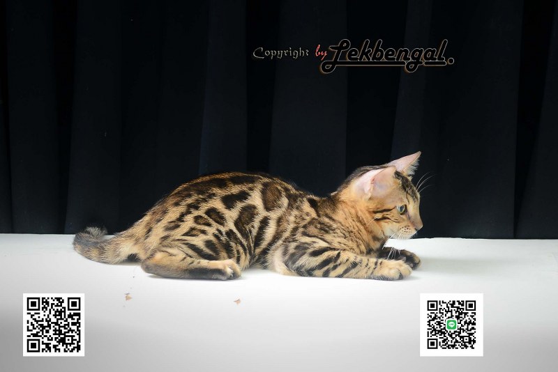 ขายลูกแมวเบงกอลราคาพิเศษ เพศเมีย ลายใหญ่ อายุ 4 เดือน ลาย Spotted Rosetted วัคซีนแล้ว